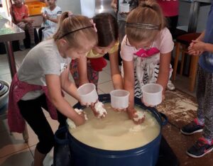 Deti si počas tejto aktivity môžu  vlastnoručne vyskúšať, ako vzniká syrová hrudka, a tú si následne