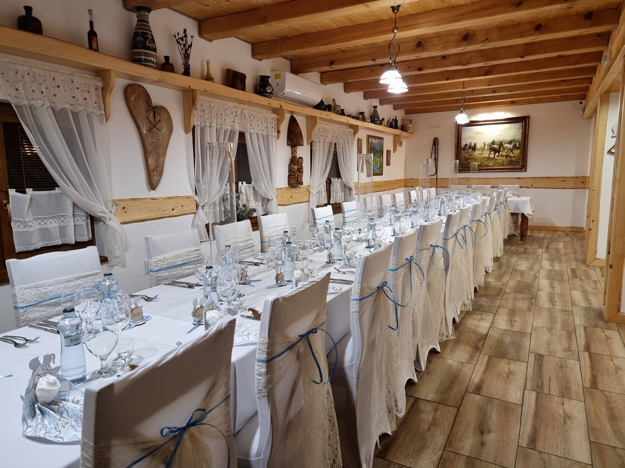 Dolná sála Reštaurácie U Zubra ponúka príjemný a útulný priestor, ktorý je ideálny na rodinné oslavy, jubileá, krstiny,